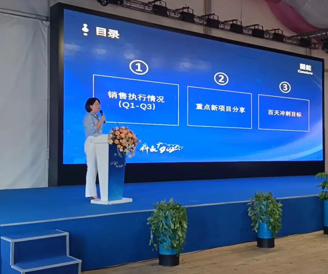 会议首先进行前三季度开能集团经营业绩总结和第四季度奋战目标,各主要业务部门负责人分别上台进行集团前三季度执行情况回顾和第四季度业绩目标、行动计划。随后,由各部门选派代表围绕着市场深耕、智能制造、创新研发、实践落地等主题进行分享。