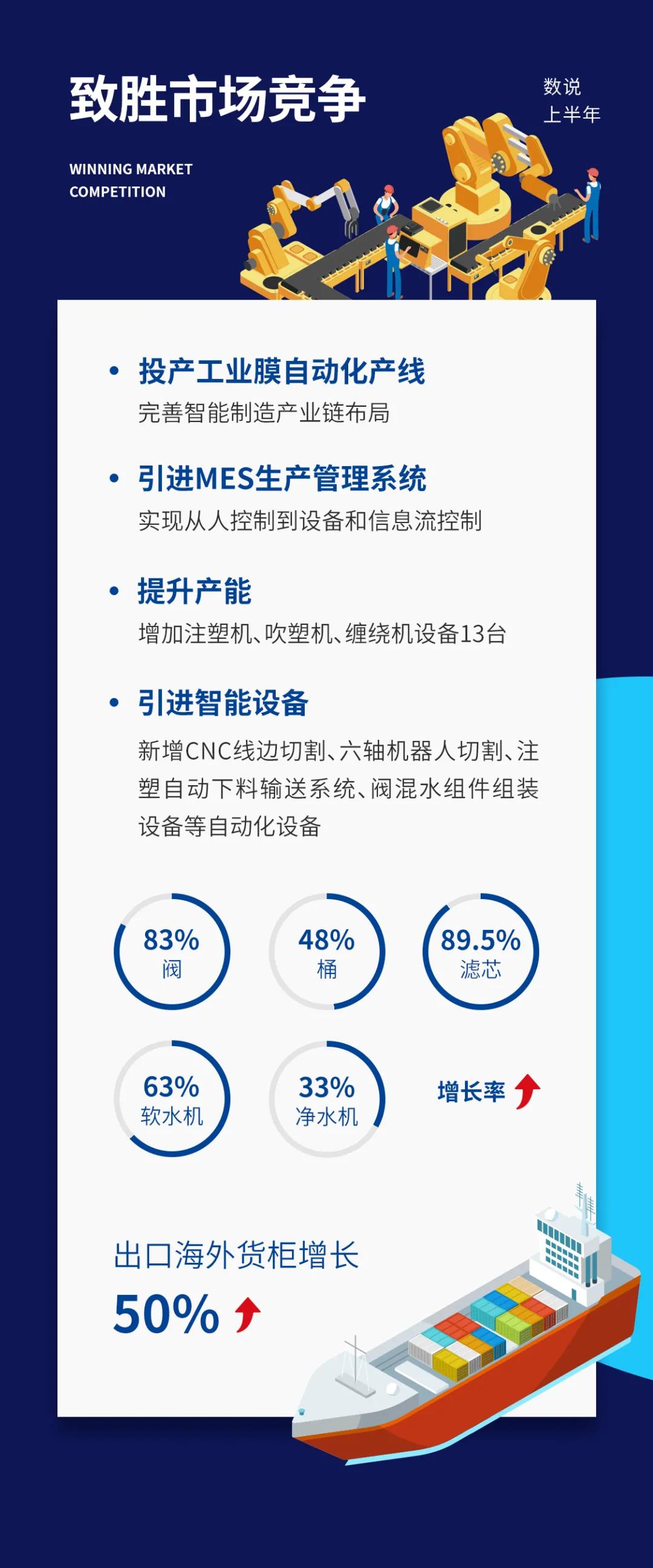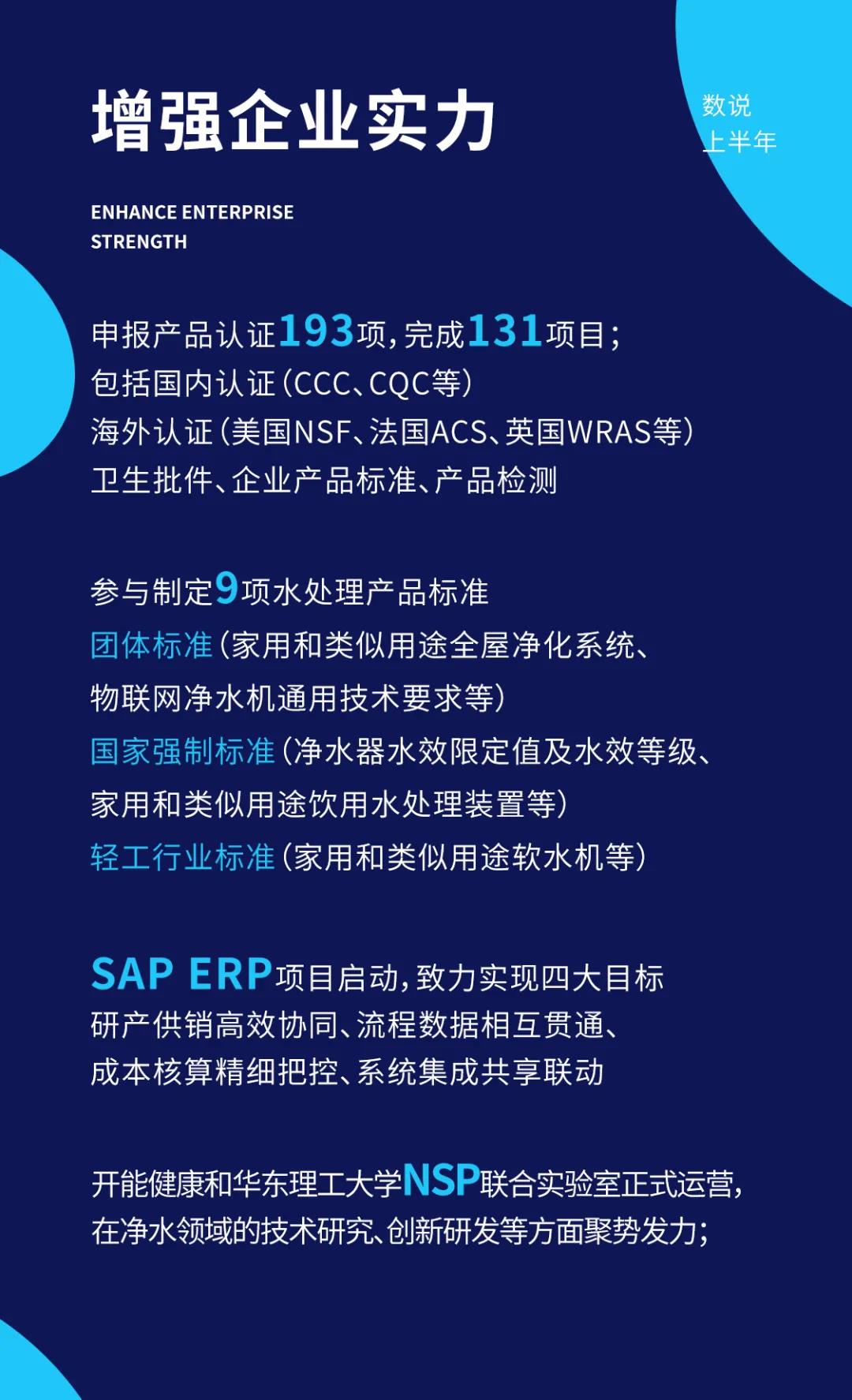 核心竞争力是指企业区别于其他企业而具有本企业特性的相对竞争能力。开能健康早在2010年前就开始布局智能制造,现已拥有完整的复合材料压力容器(玻璃钢桶)全自动化制造、反渗透膜元件全自动化制造、多路控制阀核心组件全自动化制造等智能制造能力,配合先进的管理系统提升、前瞻的产品战略研究,实现精益管理,提高运营能力。