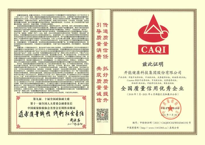 日前,由中国质量检验协会主办的2021年“质量月”主题活动中,开能健康荣膺「全国质量信用优秀企业」和「全国质量检验信誉保障产品」两大奖项。作为国内专业权威的质量检验机构,中国质量检验协会由国家质检总局主管,此次获奖是开能健康对产品和服务质量诚信进行郑重承诺,也为发挥优秀制造企业的示范引领作用传递强大正能量。