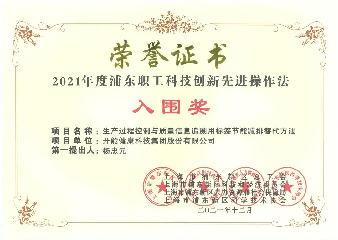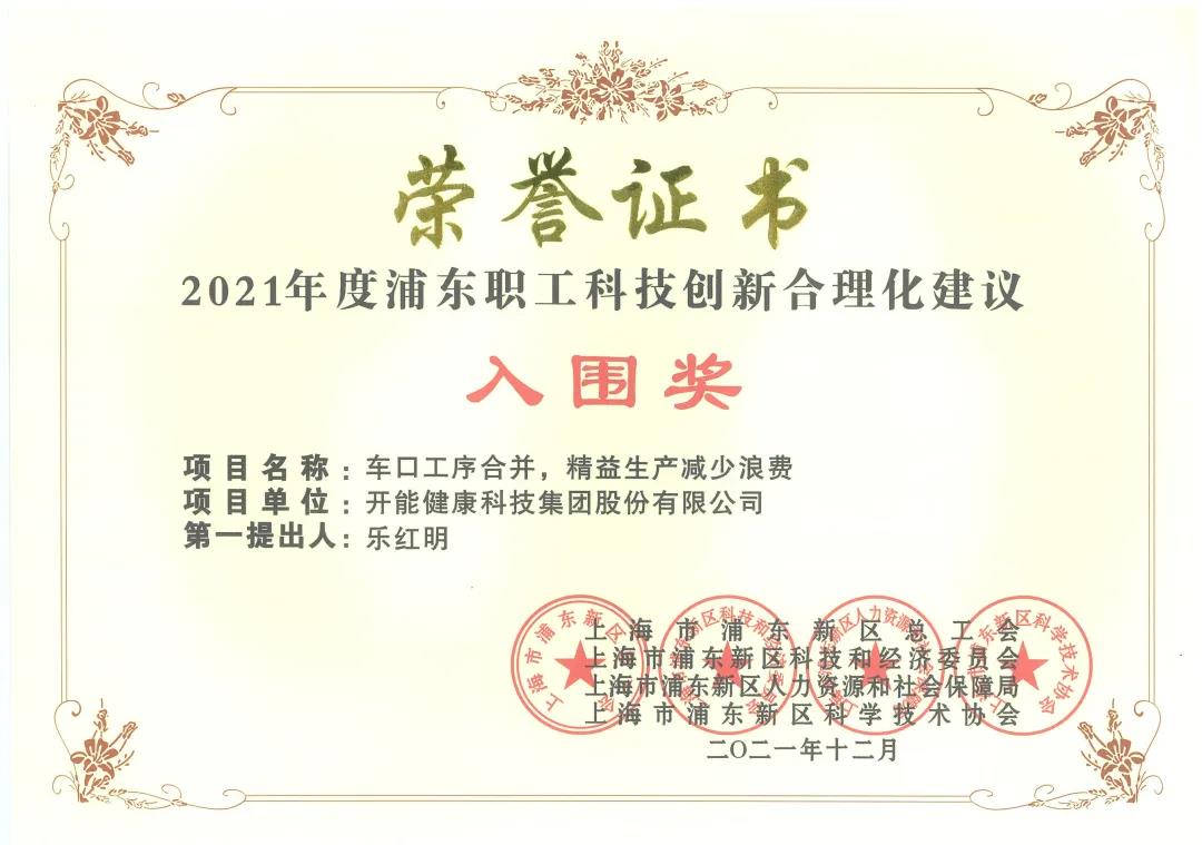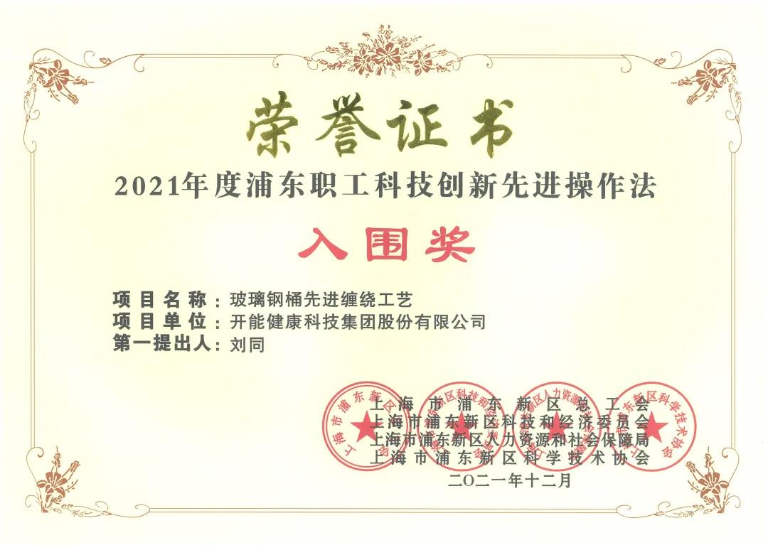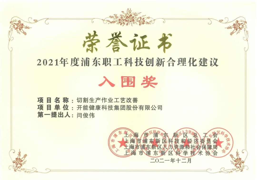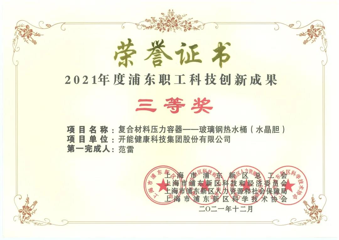 2022-01-27日前,在2021年度浦东职工科技创新成果、先进操作法、合理化建议及工人发明家、科技创新英才评选活动中,飞艇168官方开奖历史(下文简称:开能健康)共获得7项奖项,展示了开能工匠不断进取的精神,体现了开能智造不断提升的标准。
