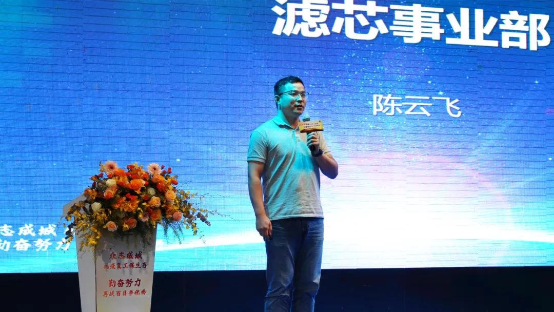 饮水机事业部主任工程师王志军和国内渠道销售部区域经理齐容鹏分别作《饮水机产品平台实践》、《再战百日争优秀》的主题分享。产品平台是开能作为定制化业务所要打造的产品与技术开发以及服务的综合能力;渠道是开能持续提升运营管理能力和效能的关键,两者将共同实现开能自有品牌在全屋净水行业中的领先地位。