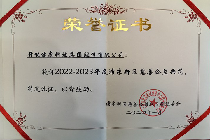 开能集团荣获2022-2023年度浦东新区慈善公益典范(企业类)奖项