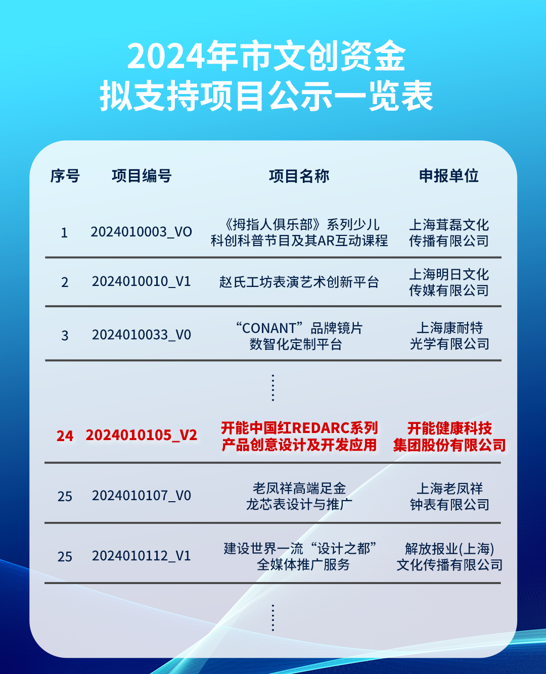 2024-10-11日前,上海市文化创意产业推进领导小组办公室发布了2024年上海市促进文化创意产业发展财政扶持资金拟支持项目(第一批)公示,开能中国红 REDARC 系列产品入选。