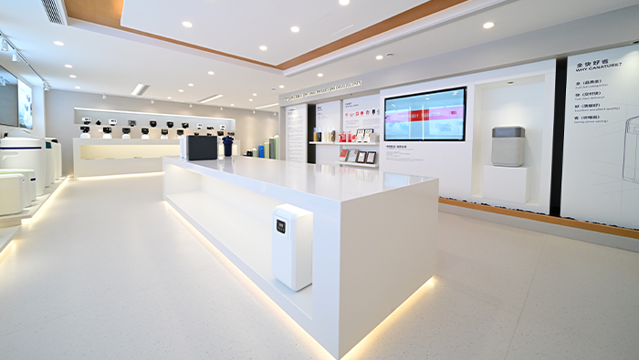 场景化的展示了开能产品全屋安装、商业安装的应用方案,通过形象、直观的展示方式让游客接触、了解水处理的概念,意识到健康饮用水的重要以及水处理设备为我们的健康生活带来的重要影响。