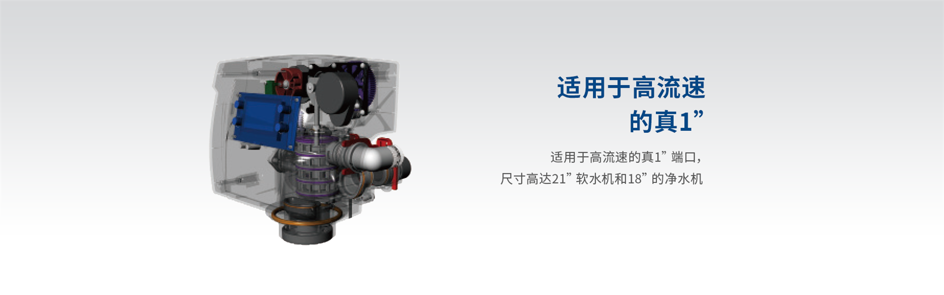 适用于高流速的真1” 端口,尺寸高达21” 软水机和18” 的净水机